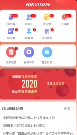 海康E服APP是一款服务运营协助工具。通过海康E服APP服务运营商可以完成售前、售中、售后的所有业务流程,轻松的管理与用户之间的关系。