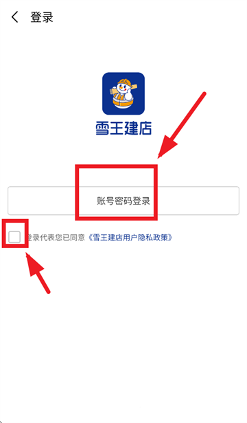 勾选登录代表您已同意 《雪王建店用户隐私政策》,点击账号密码登录