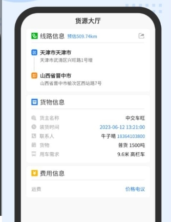 4.提供有与货主联系的方式,用户可与货主进行电话沟通联系