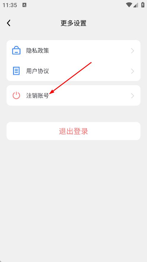 3、在更多设置页面,点击注销账号,进入注销确认环节。