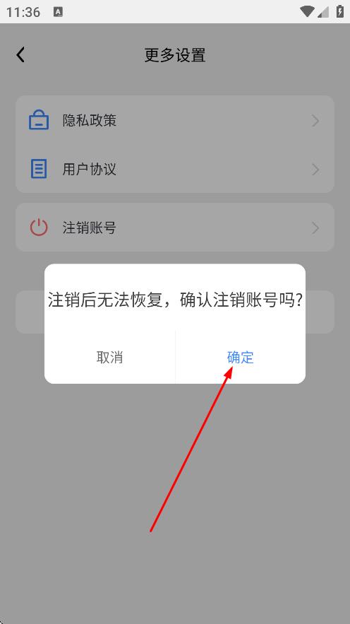 4、在注销确认弹窗中,点击确定,完成账号注销。