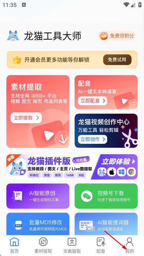 1、在龙猫工具大师首页,点击右下角我的,进入个人页面。