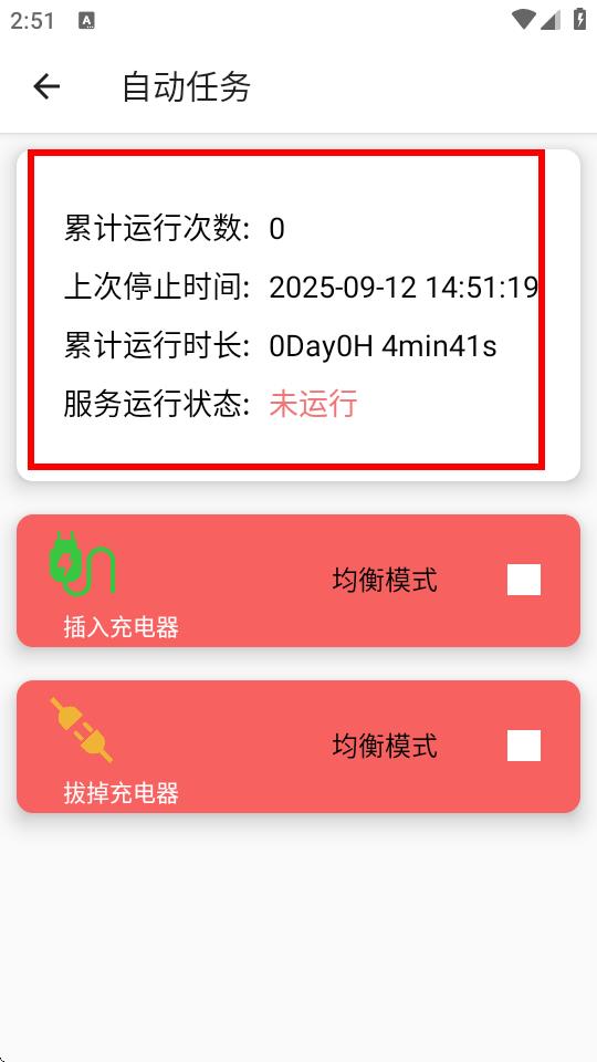 3、在自动任务页面查看当前自动任务状态,如累计运行次数、上次停止时间等信息。