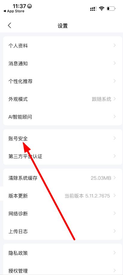 3、在设置界面中,找到并点击账号安全选项。