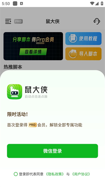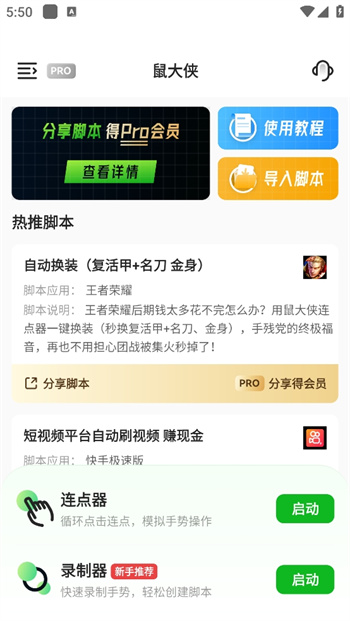 鼠大侠自动点击连点器app是帮助你解放双手的自动点击器app,除了将自己的操作轻松保存为脚本之外,还可以自动跳过app的开屏广告,解放双手,设置自己喜欢的手势操作来完成不一样的功能,傻瓜式教程更加贴心!