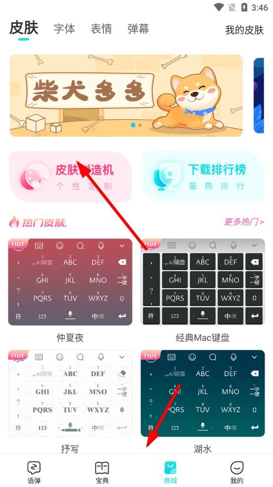 1、打开章鱼输入法APP,进入商城后,点击皮肤制造机。