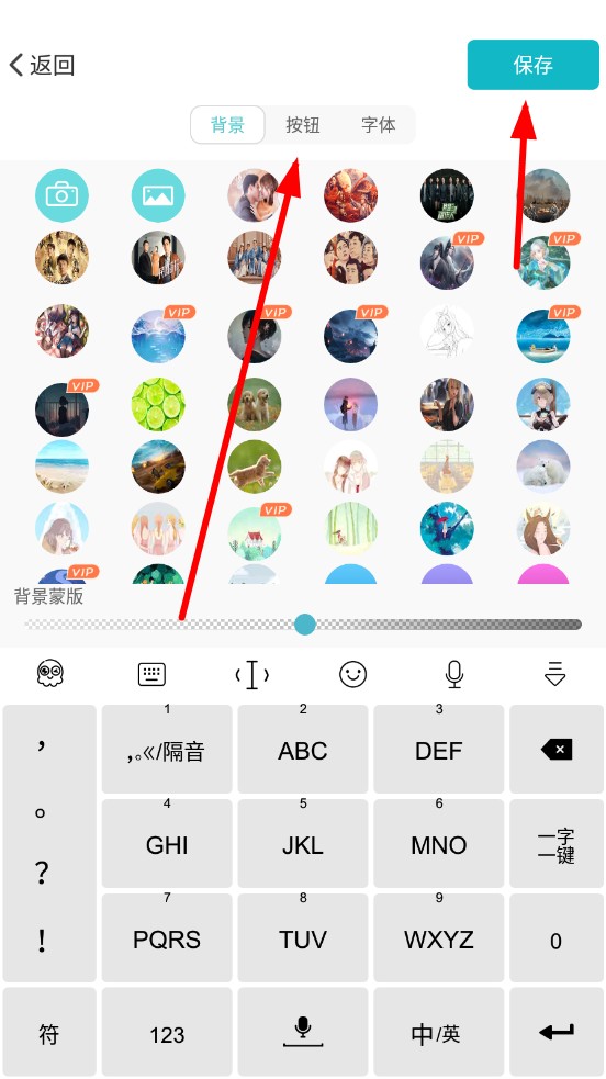 3、在制作皮肤界面,可以分别对背景、按钮、字体进行设置,点击页面右上角的保存,即可完成。