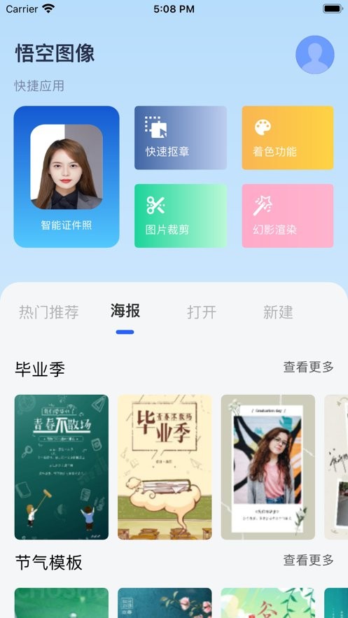 3、内置智能证件照功能,根据国家标准自动调整照片尺寸和格式,确保证件照符合尺寸要求;