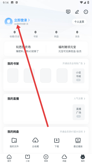 2、在进入到我的主页后,可以点击上方立即登录按钮,进行登录操作。