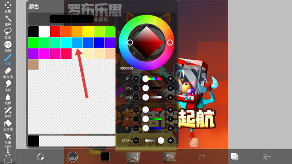 3、选定熏笔(软)后,在ibisPaint的颜色选择界面,点击预设色块中的青色方块,选定该颜色,用于后续绘画的笔触设置,实现创意绘制效果。