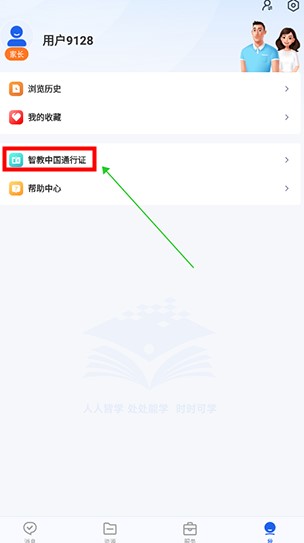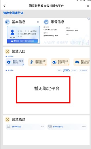 6. 注册完成后,回到我页面,点击智教中国通行证进行平台绑定。