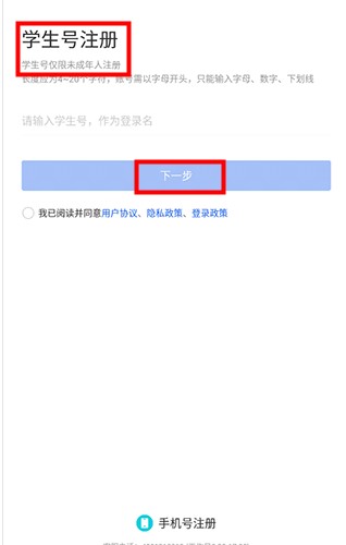 5. 若未成年人没有手机,可以使用学生号进行注册。