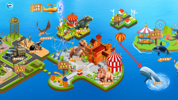 2、在游戏主场景中,点击海洋区域的互动标识,进入【海洋生物】界面。