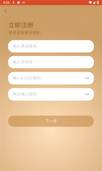填写真实姓名、手机号、以及密码。