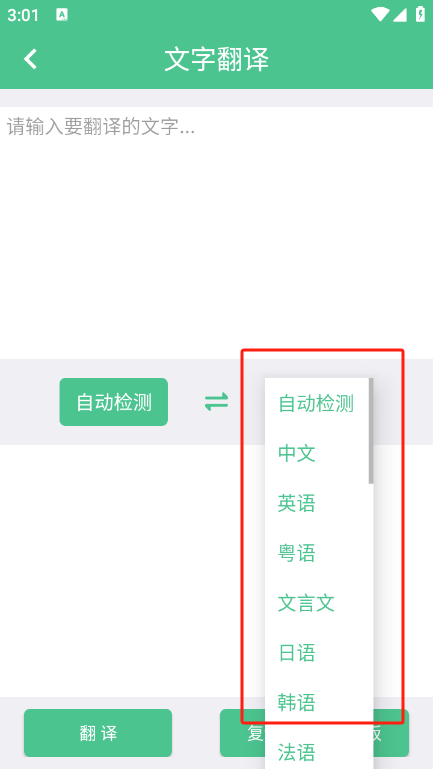 3.直接在输入框中输入要翻译的内容,选择要翻译的语言,点击【翻译】即可。