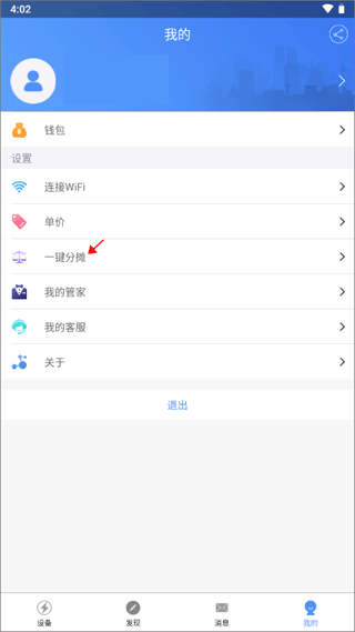 1、连接好电表设备之后,同样还是在【我的】界面,选择“一键分摊”功能。