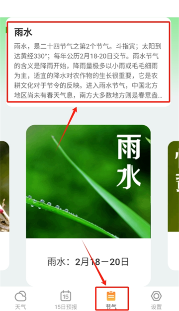 1、提供节气养生知识板块,详细涵盖 24 节气从立春到大寒的内容,可全面掌握节气习俗与养生要点。