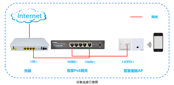拿到设备后,将设备插上电源,并将网线插在设备(光猫、网关、无线AP)对应的端口上,确认设备已正常运行。
