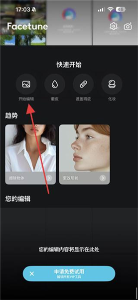 1、打开Facetune2,进入应用主界面,选择【开始编辑】选项;