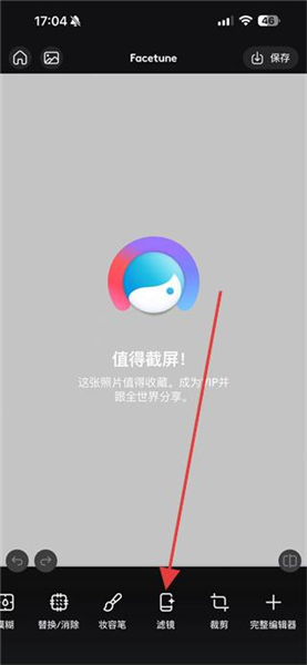 3、照片导入后,点击底部的滤镜按钮,进入滤镜效果选择界面。