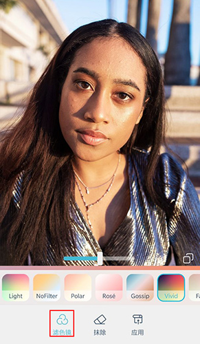 滤色镜:这个就是滤镜功能了,左右滑动调整滤镜颜色,橡皮擦抹除。