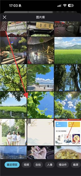 2、在图片库中,挑选一张需要修图的照片并点击导入。