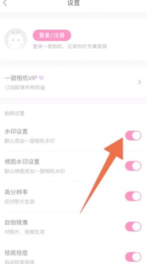 3、随后是关闭水印设置,然后是翻转到设置的页面之后,找到页面中水印设置右侧的滑块,点击关闭。