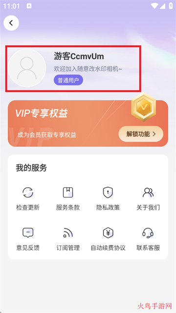 首先打开随意改水印打卡相机app,点击右下角“我的”;