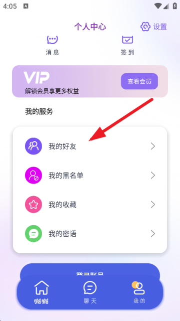 5、在个人中心就能查看我的好友、收藏以及密码等信息,还能知道会员到期时间;