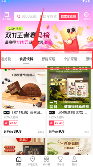 3、在首页分类导航中,选择感兴趣的商品类别进行浏览挑选。