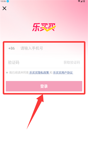 2、进入登录界面输入手机号码,通过短信验证完成账号登入。