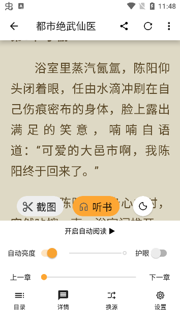 支持字体大小、背景颜色、护眼模式、自动亮度调节等自定义设置。