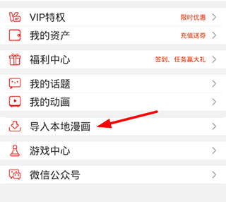 3、在你的我的页面中,底部导航将显示一个“导进当地漫画”这个选项。轻按这个功能以开始导进全过程。