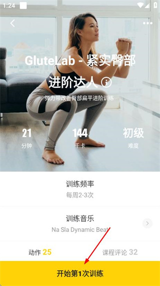 3、在课程详情页面,点击开始第1次训练按钮,启动本次训练。