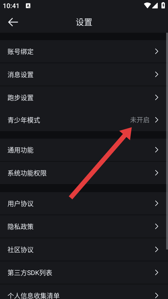 3、在设置的界面点击青少年模式,进入青少年模式的说明页面。