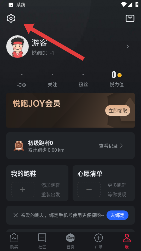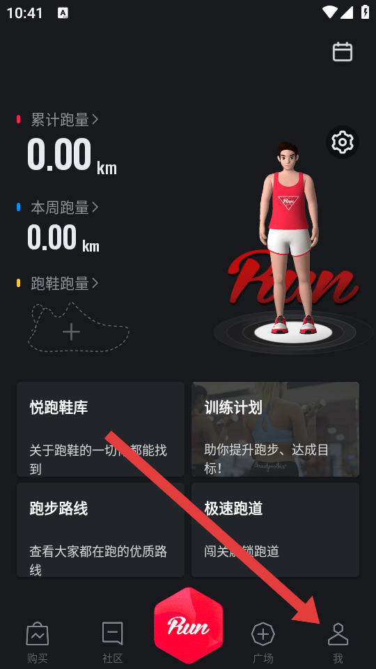 1、在悦跑圈app首页,需要点击最右边的我,进入个人功能页面。