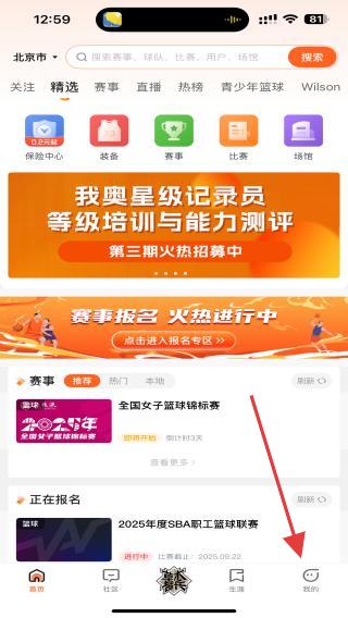 1、打开我奥体育APP,点击底部导航栏我的。