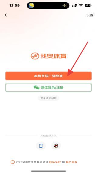 2、在登录界面,点击本机号码一键登录按钮。