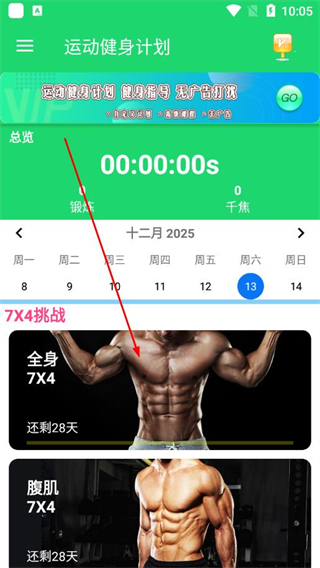 1、打开运动健身计划app的主页面,选择目标健身计划,点击进入该计划的详情界面。