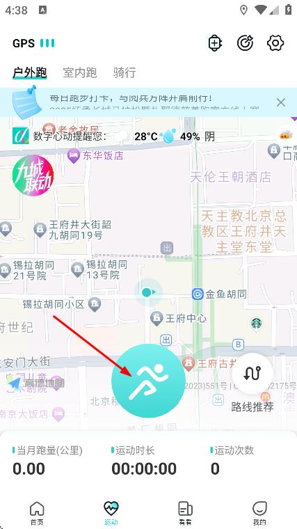 3、随后在运动页面,点击运动图标,可开始记录运动。