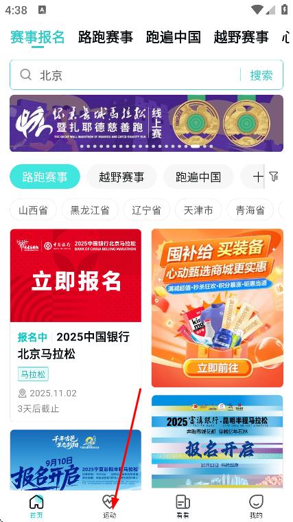 1、在应用首页,点击底部运动,进入运动页面。