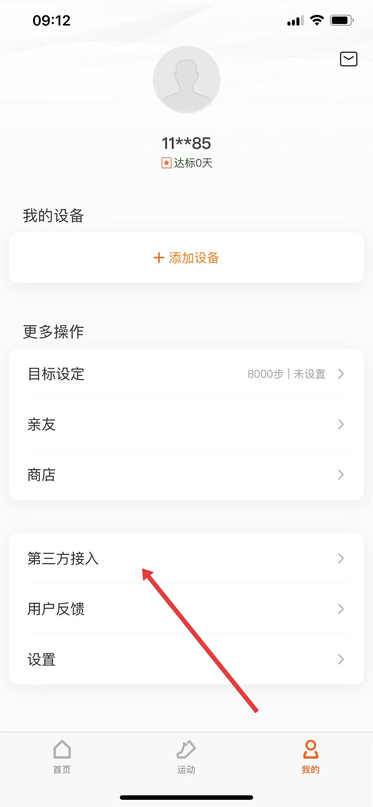 1、打开小米运动健康APP,点击页面右下角「我的」,进入个人中心后,选择「第三方接入」选项。