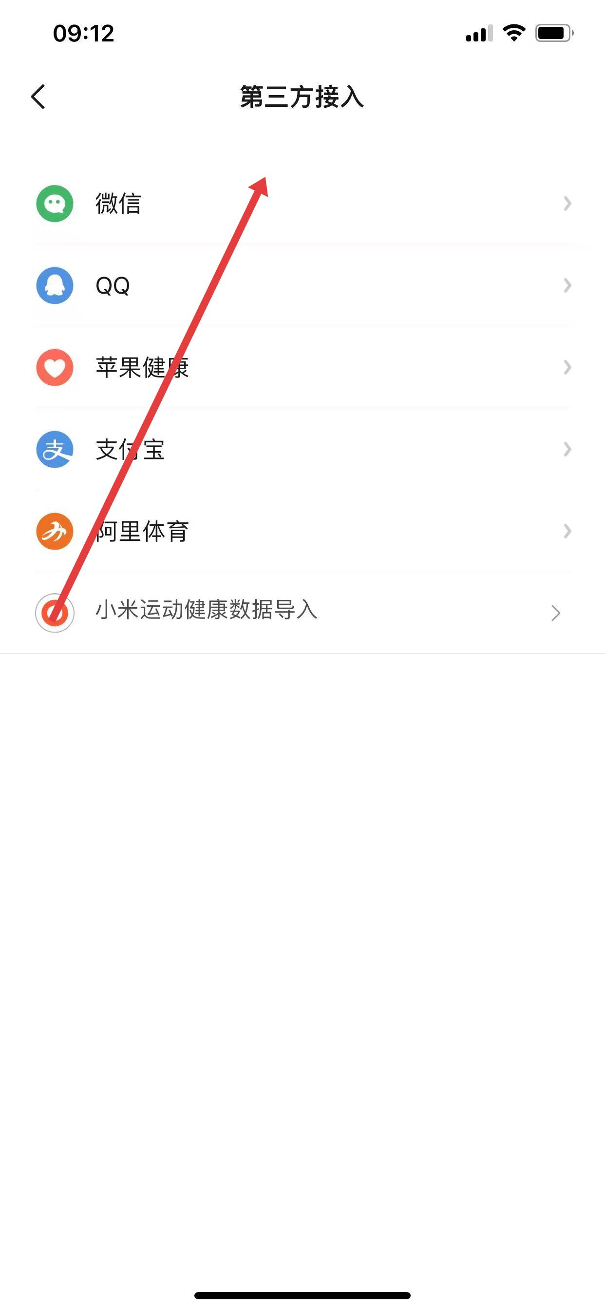 2、在第三方接入界面,点击「微信」,跳转至上传步数到微信的页面。