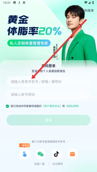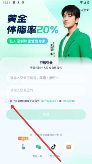 3、在切换好密码登录方式后,需先点击勾选按钮同意协议政策。