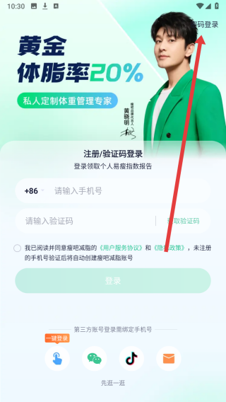 2、在进入到登录页面中,可以点击右上方密码登录按钮,切换登录方式。