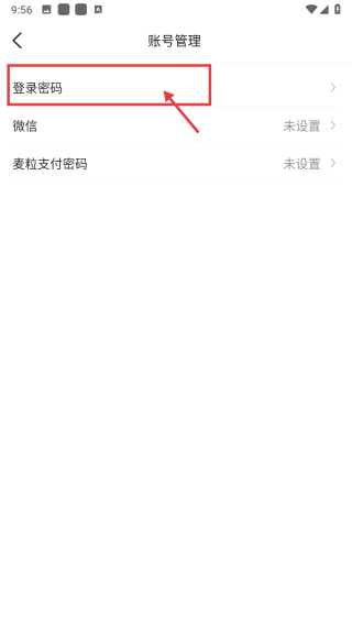4、在账号管理页面,点击登录密码选项,进行登录密码的相关操作。