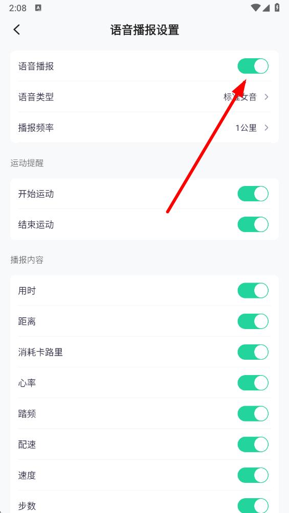 4、进入语音播报设置页面后,点击语音播报右侧的开关按钮,将其关闭即可。