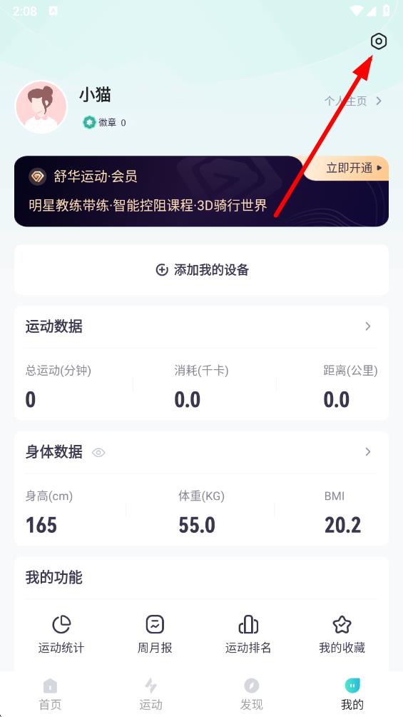 2、在我的页面中,点击右上角的设置图标,进入设置界面。