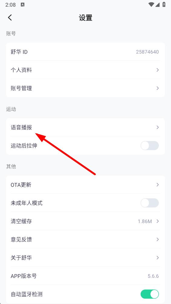 3、在设置界面里,找到并点击语音播报选项。