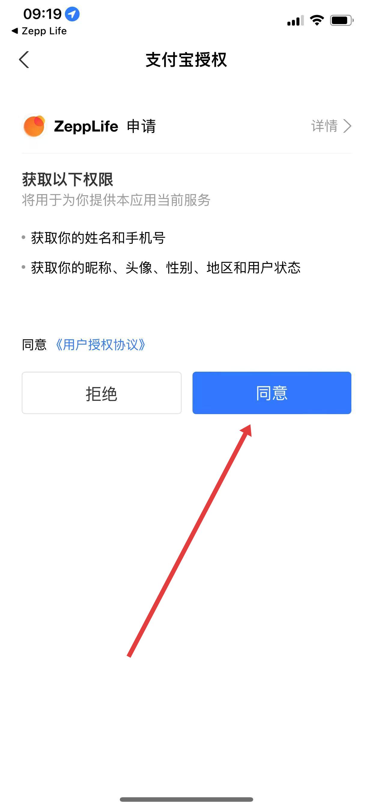 3、点击页面下方的绑定按钮,进入支付宝授权页,点击同意按钮,完成授权绑定。